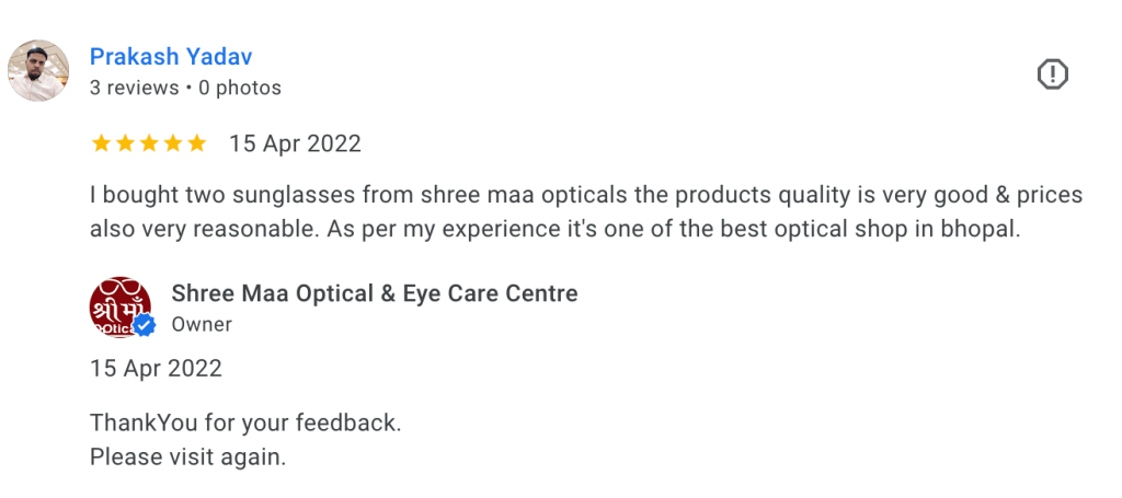 Our customers share their genuine experiences with our high-quality optical products, personalized eye care services, and the trust they’ve built with Shree Maa Optical Care.